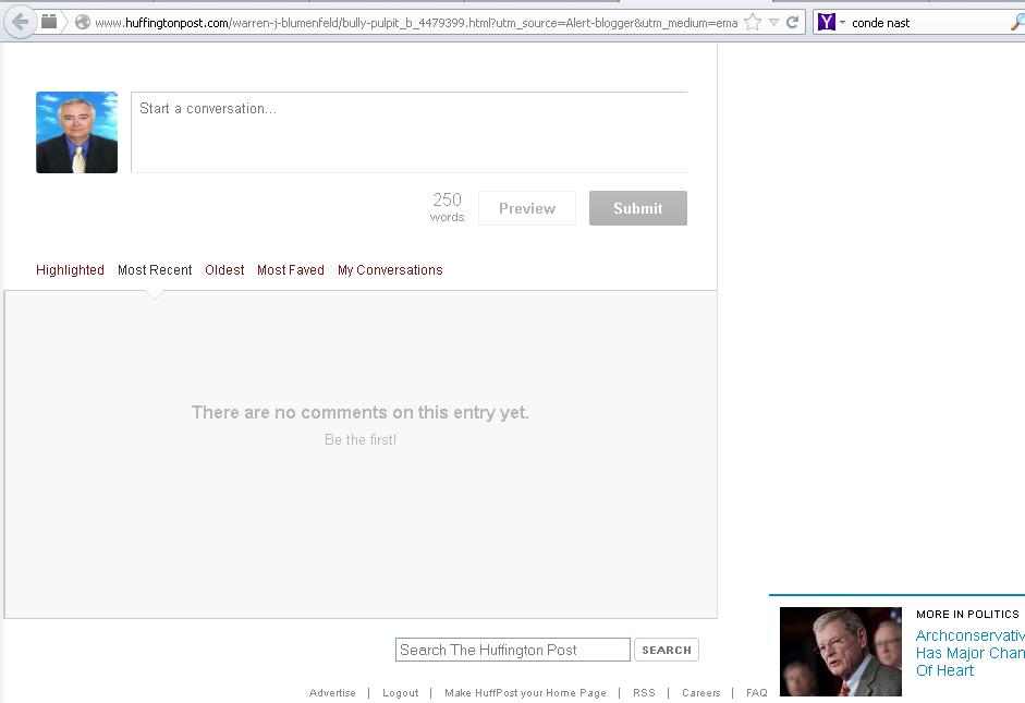 All of these I tried, and all were rebuffed. I have had a Huffington Post account for years, and left numerous commentaries and references., at Huffington Post’s invitation.